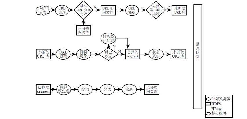 3.對未知的URL地址,首先爬取網(wǎng)頁數(shù)據(jù),然后對爬取的網(wǎng)頁數(shù)據(jù)按照網(wǎng)頁分類模型,進行網(wǎng)頁分類,不斷優(yōu)化模型,提高網(wǎng)頁分類的準確性。4.根據(jù)每個人訪問網(wǎng)址和對應網(wǎng)址的網(wǎng)頁分類,利用模型統(tǒng)計出每個手機號碼的個人喜好,為精準營銷提供依據(jù)。具體流程如下圖所示。
