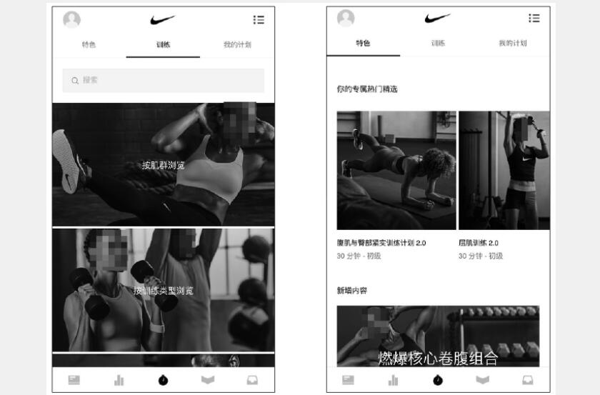 在為用戶提供增值服務(wù)方面,耐克做得非常好,耐克(Nike)給用戶提供的一款幫助完成訓(xùn)練的APP——“Nike Training Club”,在這款A(yù)PP中,用戶可以在程序中選擇適合自己的運(yùn)動(dòng)項(xiàng)目、運(yùn)動(dòng)水平、運(yùn)動(dòng)時(shí)間等,APP會(huì)通過(guò)圖片或視頻把運(yùn)動(dòng)流程展示給用戶看,給用戶提供參考,