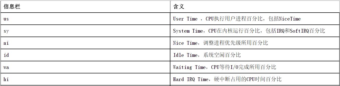 第三行是CPU利用率的統(tǒng)計(jì)信息