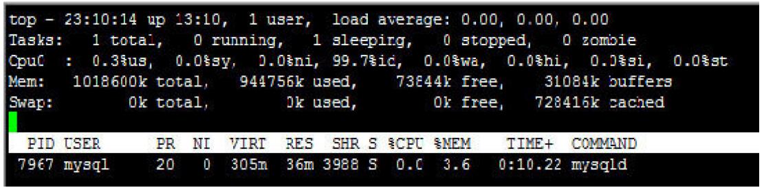 APP開(kāi)發(fā)實(shí)操示意圖4-6用top命令MySOL進(jìn)程的資源使用情況。好了,深圳APP開(kāi)發(fā)公司對(duì)于程序員在開(kāi)中對(duì)于Linux系統(tǒng)中top命令是用的詳細(xì)操作實(shí)例分享本文就寫到這里。喜歡本站的朋友請(qǐng)持續(xù)關(guān)注我們下期關(guān)于top命令使用的進(jìn)程顯示實(shí)操經(jīng)驗(yàn)介紹。深圳APP開(kāi)發(fā)博納網(wǎng)絡(luò)編輯整理。