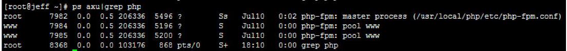 grep命令是一種強(qiáng)大的文本搜索工具,其能使用正則表達(dá)式搜索文本,并把匹配的行輸出。通過ps,管道命令“|”和grep就能把輸出中匹配進(jìn)程名的行檢索出來。例如需要了解當(dāng)前系統(tǒng)中PHP進(jìn)程的狀態(tài),可使用如下的命令。