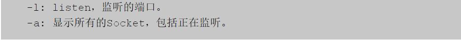 例如,查看系統(tǒng)中啟動端口,可使用如下命令
