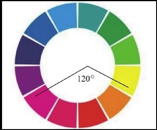 在色彩對(duì)比的強(qiáng)度上,對(duì)比色僅次于互補(bǔ)色。在色環(huán)中夾角在120°的兩種顏色互為對(duì)比色,具有較為強(qiáng)烈的對(duì)立效果,如圖2-8所示。