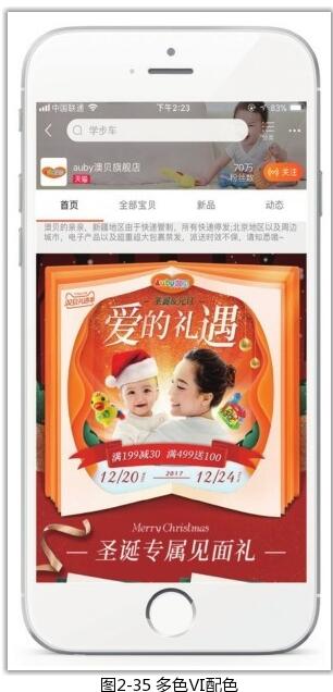 在移動端店鋪中,多色Ⅵ配色方案如圖2-35所示。店鋪Logo由三種或三種以上顏色組成,以其中一種顏色作為店鋪的主色,其余顏色作為輔助色。