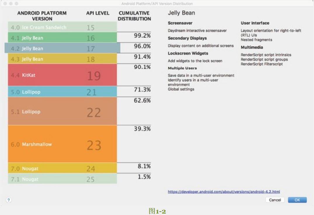 iOS APP建議適配iOS 8.o以上版本,Android APP建議適配Android 4.2以上版本,可以根據(jù)Apple和Google提供的各版本系統(tǒng)占有率的統(tǒng)計數(shù)據(jù)做實時調(diào)整。使用Android Studio新建工程時,