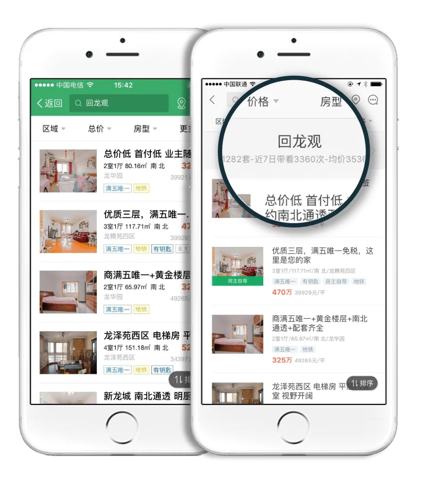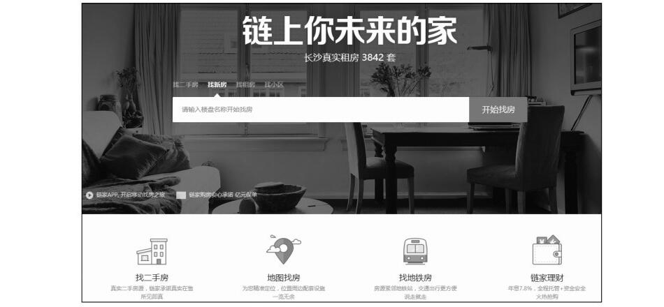 圖2-2真實(shí)房源搜索多種房源分類。顧客在看房時(shí)最先考慮的一般都是房子的面積和價(jià)格,除此之外,很多人還會(huì)考慮是否靠近學(xué)校和地鐵,這樣一來(lái),學(xué)區(qū)房、地鐵房便應(yīng)運(yùn)而生了。鏈家抓住了客戶的這一購(gòu)房心理,為顧客提供了找二手房、地鐵房等的入口,如圖2-3所示。