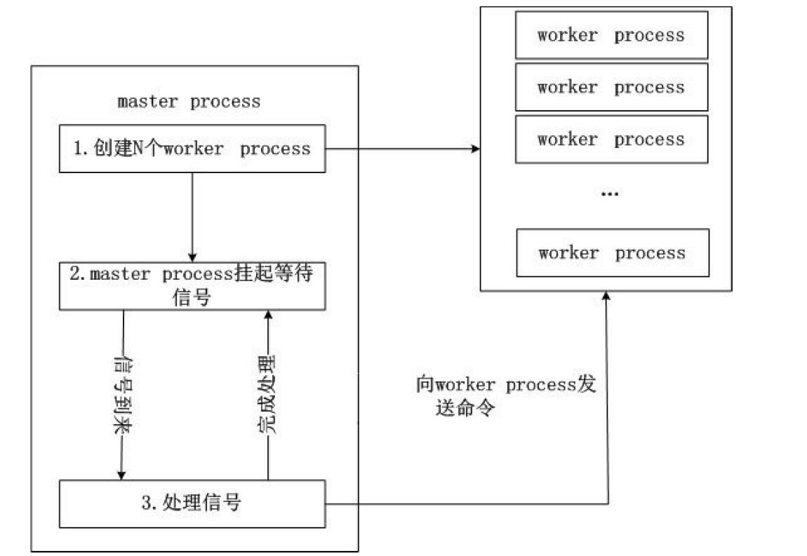 正常工作的Nginx有多個進程,基本的有master process(稱為主進程)和worker process(稱為工作進程)