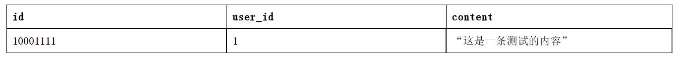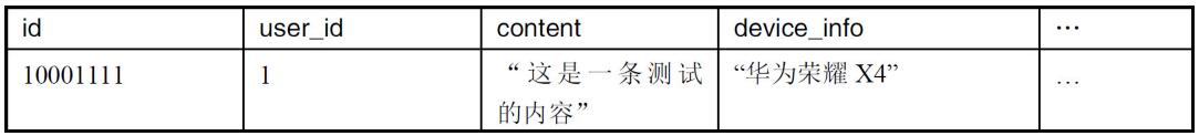 MvSQL是模式化結(jié)構(gòu),一張表中每行數(shù)據(jù)的字段是固定的。例如用戶發(fā)的內(nèi)容表初期可以用如表6-1所示的基本表結(jié)構(gòu)。