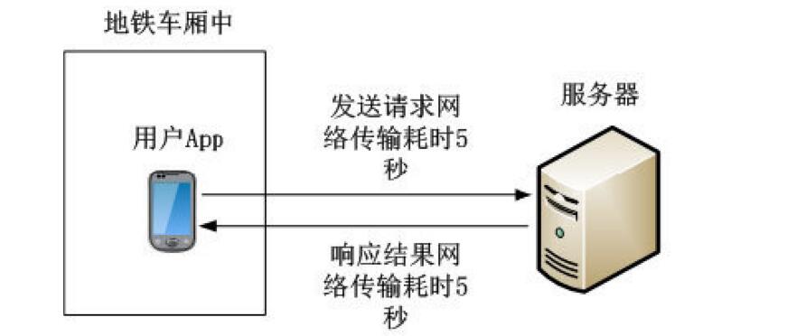弱網絡性是指由于手機不斷移動(例如在7氣車、地鐵上)的特性,有可能處于快速移動當中,因此出現信號不穩(wěn)定、響應時間變長、出現經常丟包等情況。例如有時在地鐵上,從App發(fā)送請求到App后臺,App后臺處理完畢后返回數據這個過程因為延遲就可能需要10秒,該流程如圖9-2所示。