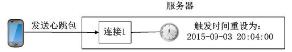在2018-09-03 20:03:00,App向服務器發(fā)送了個心跳包,服務器收到心跳包后把定時器的觸發(fā)重設h201s-09-03 20:04:00.如圖9-5所示。