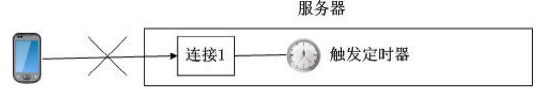 如果服務器到了定時的觸發(fā)時間2018-09-03 20:04:OO還沒有收到App新發(fā)送的心跳包,則定時器被觸發(fā),主動端口了服務器和App的連接,如圖9-6所示。