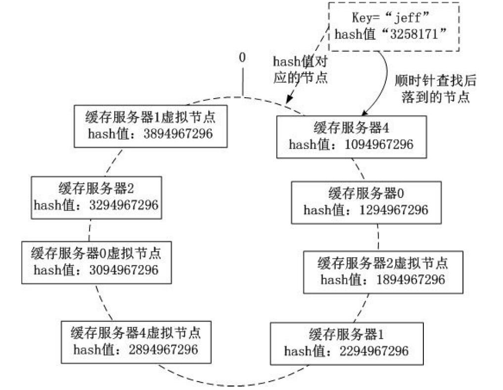 一致性哈希算法是1997年由麻省理工學(xué)院提出的種分布式哈希(DHT)實(shí)現(xiàn)算法。其基本原理是構(gòu)造個(gè)長度為0—4294967296的圓環(huán)(稱為一致性hash環(huán)),根據(jù)緩存服務(wù)器名稱的hash值(分布范圍是。-4294967296)把緩存服務(wù)器放置在這個(gè)hash環(huán)上。當(dāng)緩存的請(qǐng)求到達(dá),根據(jù)緩存數(shù)據(jù)的Key計(jì)算得到其hash值(分布范圍同樣是0-4294967296),根據(jù)這個(gè)hash值判斷緩存數(shù)據(jù)是否命中緩存服務(wù)器,如果沒有命中緩存服務(wù)器,則順時(shí)針在hash環(huán)上查找距離這個(gè)Key的hash值最近的緩存服務(wù)器。