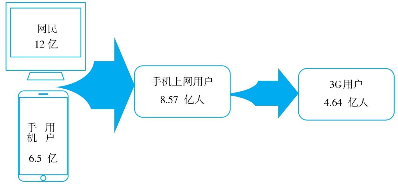 工業(yè)和信息化部公布的電信服務(wù)質(zhì)量情況顯示,隨著服務(wù)能力持續(xù)提升,截至2014年年底,我國的手機用戶已經(jīng)近12億,互聯(lián)網(wǎng)網(wǎng)民的規(guī)模已經(jīng)達(dá)到了6.5億,普及率達(dá)到了47.8%。其中,使用手機上網(wǎng)的用戶數(shù)量為8.57億人,占總數(shù)量的68.24%,使用3G網(wǎng)絡(luò)的用戶有4.64億人,占比為37.34%,如圖所示。
