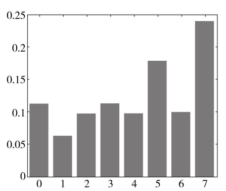 說明:圖中橫坐標(biāo)表示時(shí)間段(共8個(gè)時(shí)間段,每個(gè)時(shí)間段為3個(gè)小時(shí)),縱坐標(biāo)是該時(shí)間段內(nèi)用戶的活躍性比。