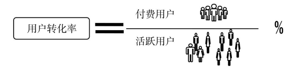 從這個角度來看,轉(zhuǎn)化率又指付費用戶比例,如圖4 所示,是指某時間段內(nèi),付費用戶數(shù)占活躍用戶數(shù)的比例;一般以周、月為單位進(jìn)行統(tǒng)計。