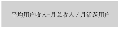 個用戶的付費額度,常用的統(tǒng)計周期為每月。ARPU是App運營收入最直接的