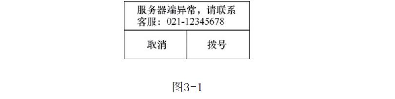 如圖3-1所示,明確告知用戶服務(wù)器端出現(xiàn)問題了,需要聯(lián)系客服解決。
