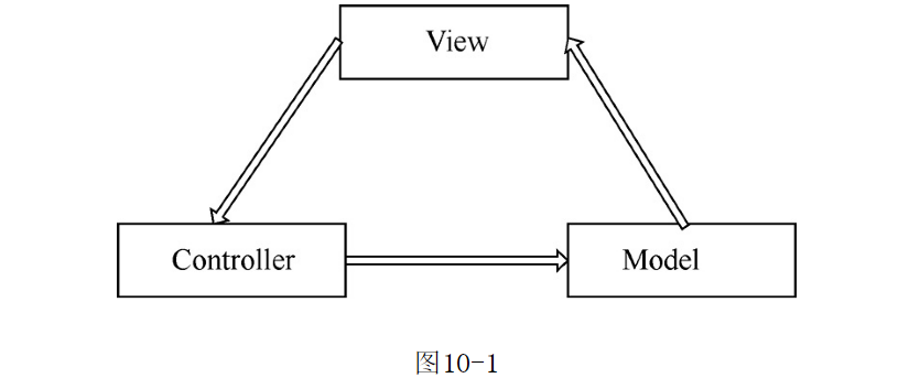 圖10-1在MVC里,View是可以直接訪問Model的,View里會包含Model信息,不可避免的還要包括一些業(yè)務(wù)邏輯。在Android開發(fā)中,Activity和Fragment往往既是V又是C,從而導(dǎo)致代碼極其臃腫。