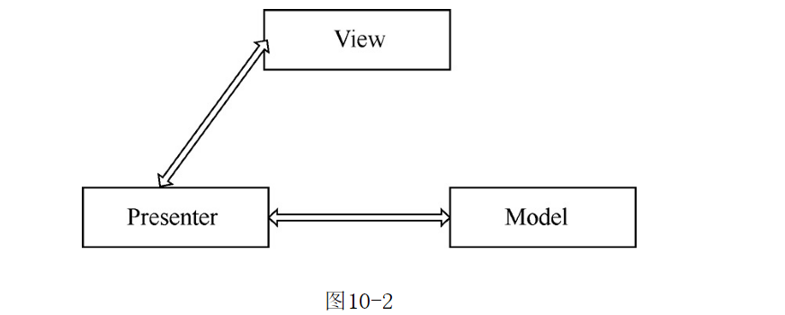 圖10-2在MVP中,所有的邏輯都在Presenter層實現(xiàn),這層的負擔較重,而且相比MVC會多出許多接口方法。