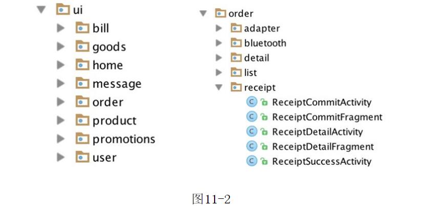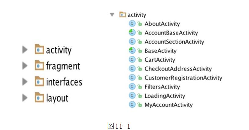 Android應(yīng)用的View層包括Activity和Fragment等UI相關(guān)的類和接口。分為兩大功能模塊:接口模塊和功能模塊。此功能模塊的代碼文件有以下兩種管理方式。按類型分類,如圖11-1所示。