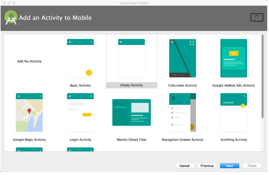 或在工程中選擇新建Activity時,也可以選擇內(nèi)置的Activity模板,如圖25-4所示: