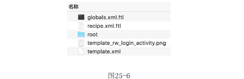 參考AndroidStudio提供的模板,要定制一個模板,涉及如圖25-6所示的文件: