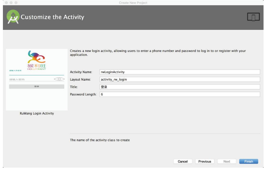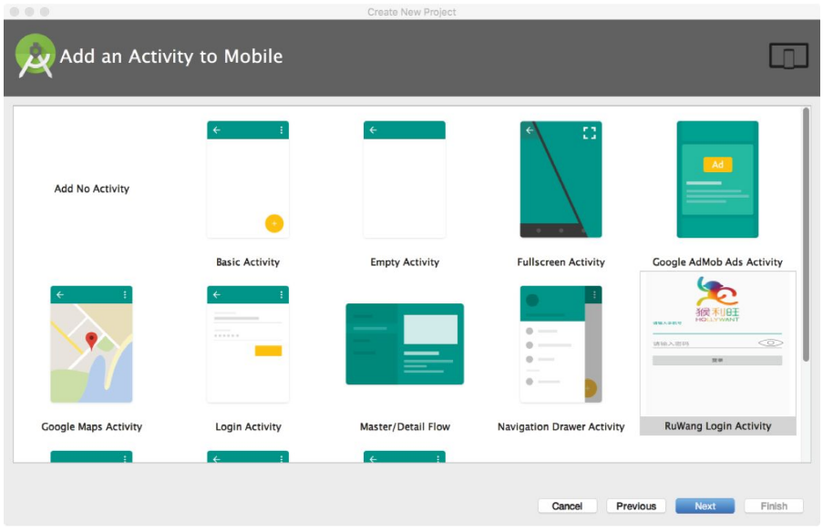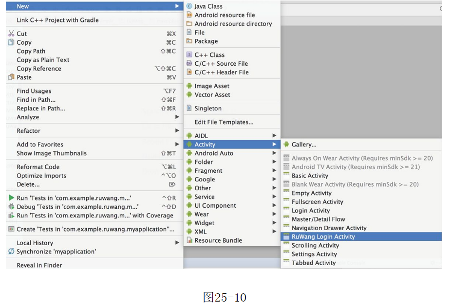 在工程中選擇新建Activity時,也可以使用rwLoginActivity模板了,如圖25-10所示: