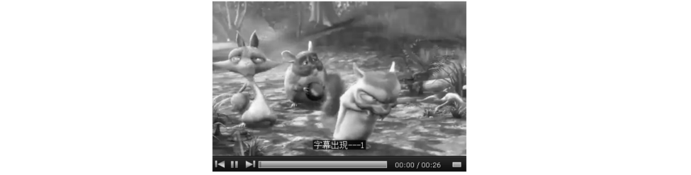 點(diǎn)擊播放按鈕,視頻下方出現(xiàn)字幕本例的代碼構(gòu)建在“3-7.處理帶字幕的視頻.html”的基礎(chǔ)上,沒有額外的腳本改動(dòng)。在HTML中增加字幕結(jié)構(gòu),代碼如下: