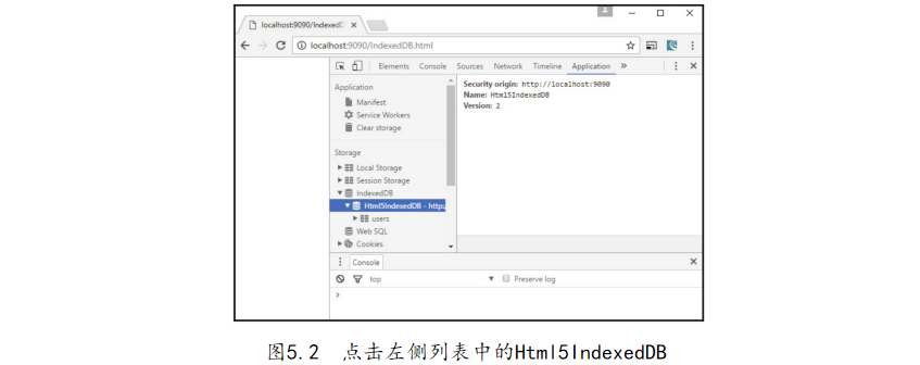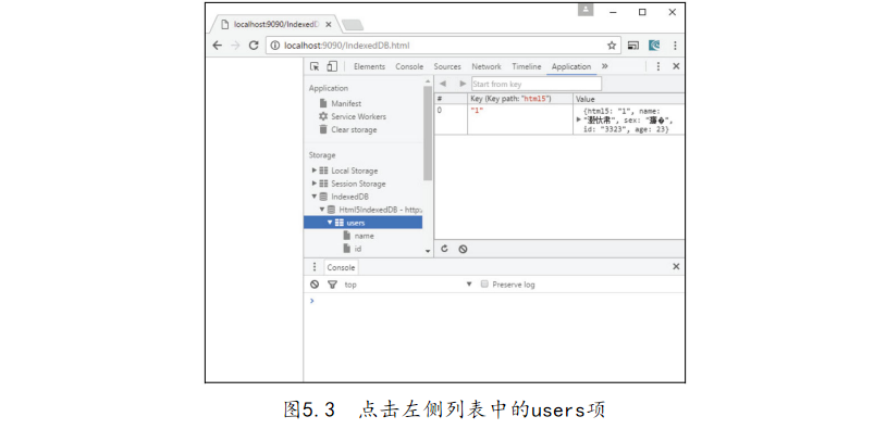 WebSQLDatabase數(shù)據(jù)庫是基于SQLite開發(fā)的,與WebStorage中的LocalStorage相同。最后一個也是最為強大的功能即IndexedDB。IndexedDB是HTML5推出的一種輕量級的NoSQL數(shù)據(jù)庫,即常說的非關(guān)系型數(shù)據(jù)庫。與傳統(tǒng)的關(guān)系型數(shù)據(jù)庫相比,NoSQL數(shù)據(jù)庫具有易擴展、快速讀寫、成本低廉等特點,HTML5的IndexedDB同時還包含了常見的數(shù)據(jù)庫構(gòu)造,如事務(wù)、索引、游標(biāo)等,在API的使用上分為同步和異步兩種形態(tài)。下面通過一個簡單的示例介紹IndexedDB的使用,代碼如下: