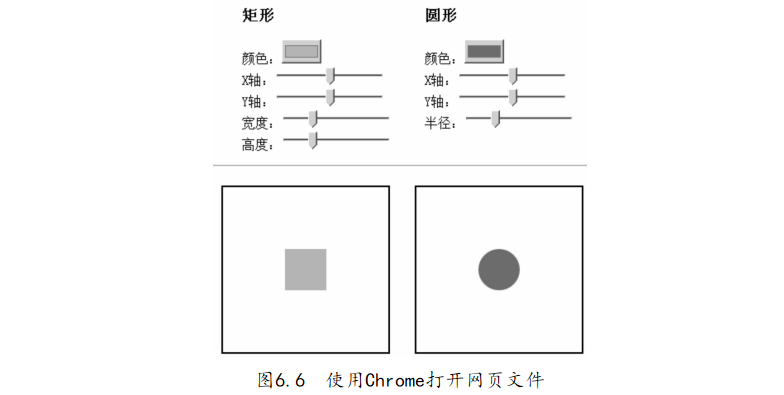 利用編輯器打開(kāi)“6-4.繪制圖形:矩形和圓形.html”文件,代碼如下: