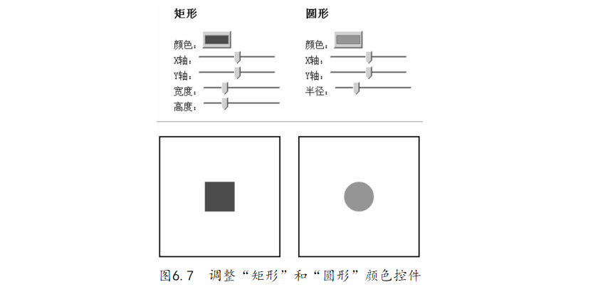 51 var color_ rect = document. getElementById(' color_ rect'), // 獲取 矩形 顏色 選擇 元素 52 x_ rect = document. getElementById(' x_ rect'),// 獲取 矩形 x 軸 滑 塊 元素 53 y_ rect = document. getElementById(' y_ rect'),// 獲取 矩形 y 軸 滑 塊 元素 54 width_ rect = document. getElementById(' width_ rect'), // 獲取 矩形 寬度 滑 塊 元素 55 height_ rect = document. getElementById(' height_ rect'); // 獲取 矩形 高度 滑 塊 元素 56 // 循環(huán) 矩形 設(shè)置 元素, 綁 定數(shù) 據(jù) 變更 change 事件 57 [color_ rect, x_ rect, y_ rect, width_ rect, height_ rect]. forEach( function (item) { 58 item. addEventListener(' change', draw_ rect, false); 59 }); 60 draw_ rect(); // 繪制 默認(rèn) 矩形 61 function draw_ circle() { // 獲取 控 件數(shù) 據(jù) 繪制 圓形 62 canvas_ circle. clearRect( 0, 0, 300, 300); // 清空 給定 矩形 63 canvas_ circle. fillStyle = color_ circle. value; //
