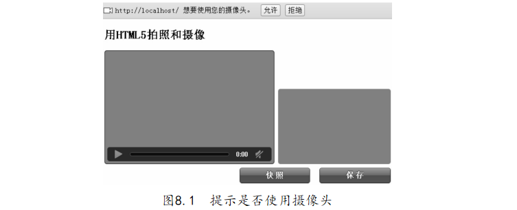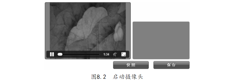 點(diǎn)擊“保存”按鈕,畫布圖片將被保存為“照片.png”以供下載。APP開發(fā)者可以自己體驗(yàn),本例不做圖片說明。利用編輯器打開“8-1.用HTML5拍照和攝像.html”文件,代碼如下:【代碼8-1】