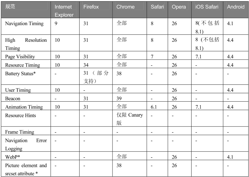 各瀏覽器對(duì)性能API的支持情況。好了APP開發(fā)公司本文關(guān)于“開發(fā)APP怎樣解決瀏覽器設(shè)置的幾種情況?”的相關(guān)制作知識(shí)就分享到這里,謝謝關(guān)注,博納網(wǎng)絡(luò)編輯整理。[聲明]本網(wǎng)轉(zhuǎn)載網(wǎng)絡(luò)媒體稿件是為了傳播更多的信息,此類稿件不代表本網(wǎng)觀點(diǎn),本網(wǎng)不承擔(dān)此類稿件侵權(quán)行為的連帶責(zé)任。故此,如果您發(fā)現(xiàn)本網(wǎng)站的內(nèi)容侵犯了您的版權(quán),請(qǐng)您的相關(guān)內(nèi)容發(fā)至此郵箱【qin@198bona.com 】,我們?cè)诖_認(rèn)后,會(huì)立即刪除,保證您的版權(quán)。