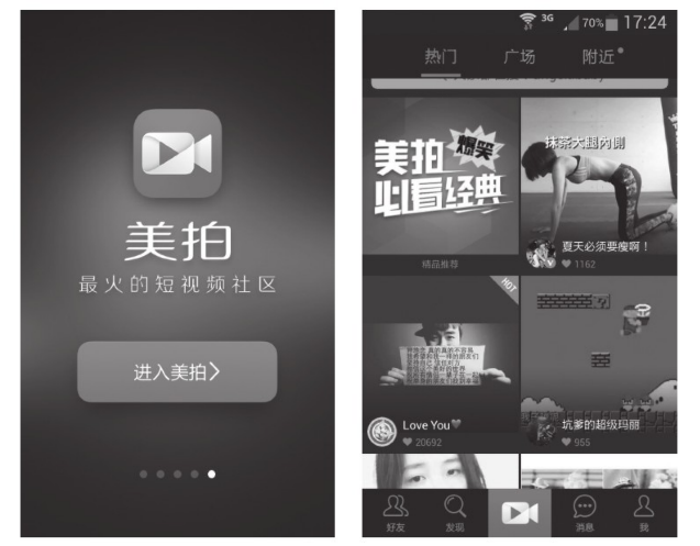 美拍是美圖秀秀出品的最火的短視頻社區(qū)。全球首創(chuàng)MV特效,普通視頻一秒變身唯美韓劇、清新MV、懷舊電影等,如圖2-31所示。