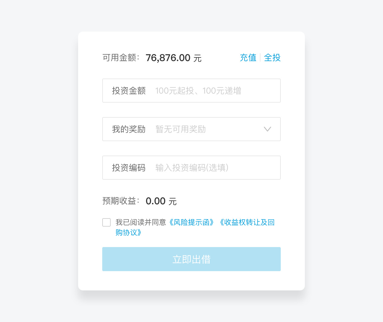 可以考慮把輸入投資編碼的操作放到其他單獨的一個流程中,比如在設置中新增一項“投資編碼”,用戶輸入一次即可,涉及投資就自動統(tǒng)計,免去用戶每次投資都要輸入投資編碼時產(chǎn)生的回憶和操作負擔。