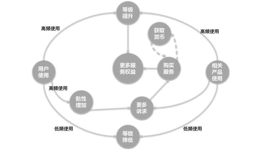 通過加強(qiáng)用戶體驗(yàn)和功能服務(wù)來引發(fā)用戶的欲望,從而增加購買付費(fèi)會(huì)員的幾率和收益。高頻的用戶在使用過程中黏性會(huì)越來越高,為了進(jìn)一步提高使用服務(wù)和體驗(yàn),通過購買付費(fèi)會(huì)員來達(dá)到最終的目的。而普通會(huì)員等級(jí)和付費(fèi)會(huì)員等級(jí)作為兩套并行的體系,允許用戶在獲得高級(jí)會(huì)員資格后依然有提升的空間??偟貋碚f,用戶通過使用獲取成長,成長過程中會(huì)員權(quán)益和付費(fèi)會(huì)員權(quán)益會(huì)刺激用戶消費(fèi),消費(fèi)后獲得更好的服務(wù)將會(huì)延續(xù)產(chǎn)品的使用壽命,從而增加用戶再次消費(fèi)的概率。在生態(tài)鏈中,成長、權(quán)益和消費(fèi)需要形成一個(gè)閉環(huán),這也是會(huì)員體系設(shè)計(jì)時(shí)候需要重點(diǎn)考慮的問題。