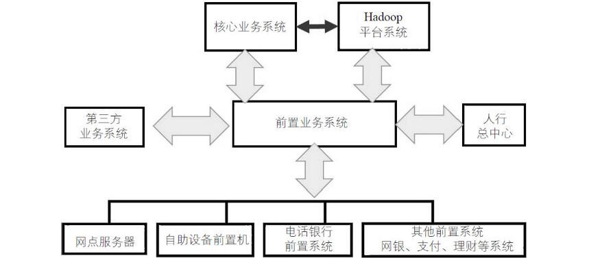 在金融銀行業(yè)的應(yīng)用架構(gòu)基于分布式系統(tǒng)基礎(chǔ)架構(gòu)技術(shù)的特點(diǎn),可以用它來存儲(chǔ)銀行業(yè)的離線數(shù)據(jù),并開發(fā)相應(yīng)的算法對(duì)這些數(shù)據(jù)進(jìn)行挖掘分析,提高銀行企業(yè)對(duì)歷史數(shù)據(jù)的利用價(jià)值。目前,銀行企業(yè)的業(yè)務(wù)基本邏輯架構(gòu)由外圍系統(tǒng)、前置業(yè)務(wù)系統(tǒng)和核心業(yè)務(wù)系統(tǒng)組成,如下圖所示。外圍系統(tǒng):負(fù)責(zé)直接與客戶進(jìn)行交互,提供業(yè)務(wù)服務(wù),所有與銀行業(yè)務(wù)相關(guān)的系統(tǒng),均可以歸為外圍系統(tǒng)。前置業(yè)務(wù)系統(tǒng):業(yè)務(wù)交易數(shù)據(jù)的跳轉(zhuǎn),它負(fù)責(zé)接收來自外圍系統(tǒng)的交易數(shù)據(jù),然后根據(jù)交易碼的不同,轉(zhuǎn)送不同的核心系統(tǒng)進(jìn)行處理,同時(shí)把從核心系統(tǒng)返回的處理結(jié)果返回到外圍系統(tǒng)。