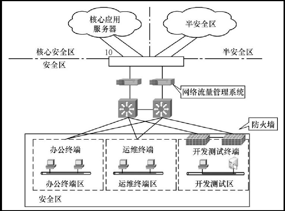在內(nèi)容安全上,考慮部署入侵檢測或入侵防護(hù)設(shè)備,對核心安全區(qū)內(nèi)的主機(jī)系統(tǒng)安裝防病毒軟件,并進(jìn)行集中的防病毒管理。