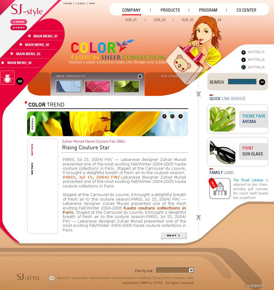 在網頁設計實踐中,我們常常會發(fā)現這樣的情況:面對一大片紅色時,視覺上往往會感覺太刺激,而面對一小塊紅色時,就會覺得很舒服,鮮艷而美麗。這里就包含了色彩調和與面積多少的關系。通過增減對立色各自占有的面積,造成一方的較大優(yōu)勢,以它為主色調來控制頁面,達成調和。實踐證明面積的調和與色彩三要素沒有直接關系,它在不改變色彩三要素的變化下,也可以通過面積的增大或減小,來達到視覺上色彩的加強、減弱和調和的作用。因此,面積的調和是任何色彩配色都必須考慮的問題,如同色彩的三屬性一樣重要。配色中較強的色要縮小面積,較弱的色要擴大面積。