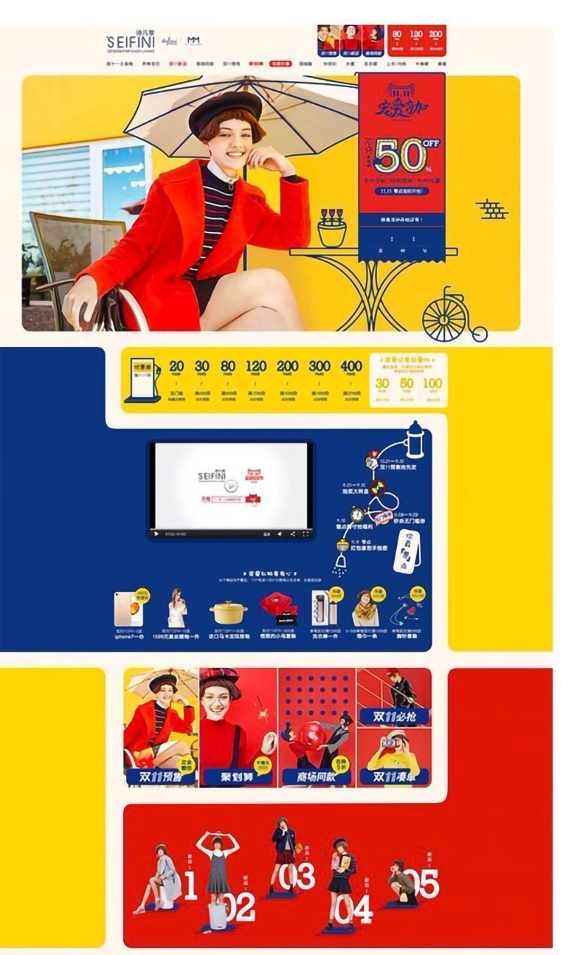 點(diǎn)綴色是指面積雖小,但起到點(diǎn)綴作用的顏色。點(diǎn)綴色的功能通常體現(xiàn)在細(xì)節(jié)上,在網(wǎng)頁(yè)上是比較分散的,且面積比較小,起到修飾點(diǎn)綴的作用。下圖所示網(wǎng)頁(yè)設(shè)計(jì)中的點(diǎn)綴色出現(xiàn)的次數(shù)較多,顏色非常跳躍,與其他顏色反差大。