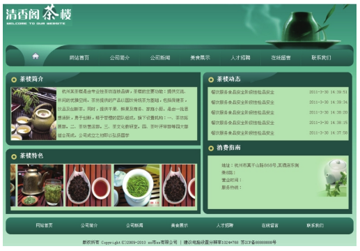 (3)古典型:古典型的餐飲類網(wǎng)站為了突出其古典的風(fēng)格,一般會(huì)在頁面中采用具有文化底蘊(yùn)的圖像和文字進(jìn)行裝飾,該類型的網(wǎng)站通常應(yīng)用于具有文化氛圍的茶館等。圖3所示為古典型茶館網(wǎng)站。