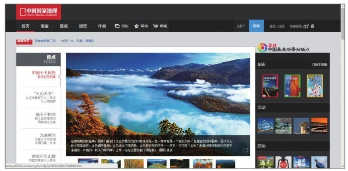 圖4 中國國家地理雜志網(wǎng)站首頁