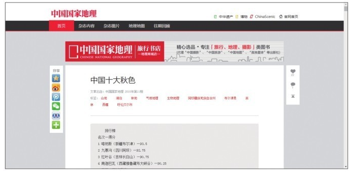 圖5  中國國家地理雜志網(wǎng)站專題頁面