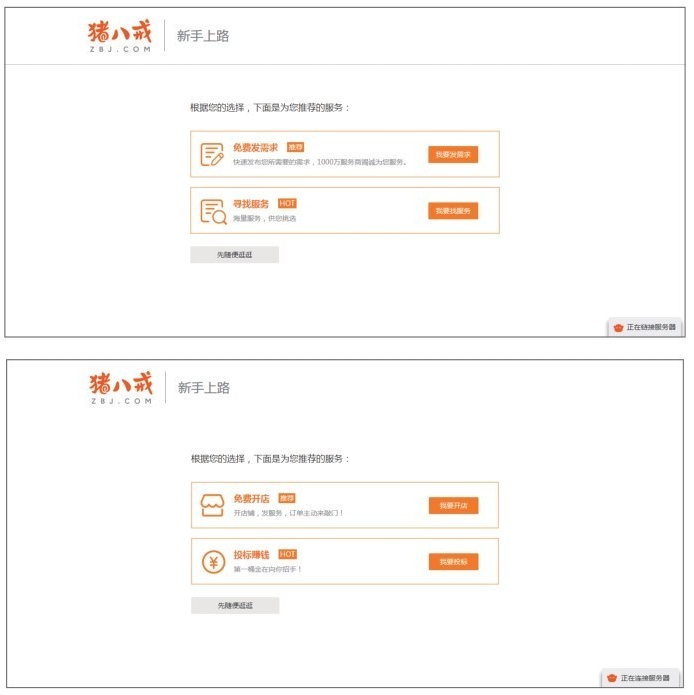 圖7 網(wǎng)用戶入口頁面(上為雇主頁面,下為服務(wù)商頁面)