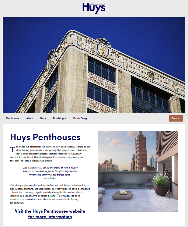 如Huys-nyc網(wǎng)站(見圖5.2)的界面重點就十分突出,歸結(jié)其原因就在于該網(wǎng)頁的全局導航一直固定在頁面下方,而局部導航被隱藏在左側(cè)的箭頭圖標中,這樣就為主屏重點的大圖信息留下大面積的展示空間。