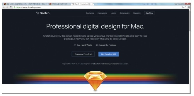 著名Mac平臺設(shè)計軟件Sketch的官網(wǎng)(見圖5.3)的設(shè)計就是個很好的例子,設(shè)計元素單純、色調(diào)統(tǒng)一,深色和淺色被容納到一個統(tǒng)一的頁面設(shè)計中來。在第一屏中,你會注意到兩個按鈕,它們分別是深色的“免費試用”和淺色的“立刻購買”,兩個按鈕大小相當,并且處于同一個水平面上,“免費購買”的按鈕被設(shè)計成為深灰色按鈕,整體和深色背景幾乎融為一體,而使用淺藍色實底的“立刻購買”按鈕和背景構(gòu)成了鮮明的對比,相當?shù)娘@眼。當你打開頁面的時候,會一眼注意到購買按鈕,這就是通過大量的留白和合理的對比營造出來的視覺引導。
