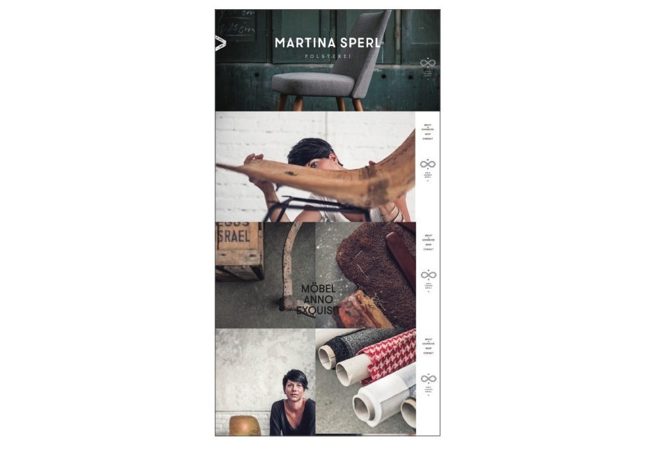 現(xiàn)如今無(wú)論是攝影圖片還是矢量圖片,使用大圖作為網(wǎng)頁(yè)背景越來(lái)越受歡迎,有的甚至是全屏圖片。如Martina Sper1家居網(wǎng)站(見(jiàn)圖4)首頁(yè)將整個(gè)背景都鋪滿了大圖,全局導(dǎo)航固定在界面右側(cè),其目的是讓用戶完全沉浸在美好的家居生活中。