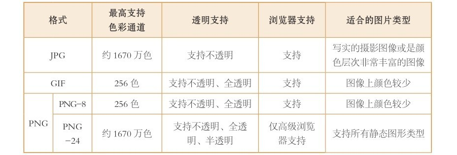 這3種格式是位圖中最典型、也是最具代表性的格式,它們有著各自的優(yōu)點(diǎn),設(shè)計(jì)師切圖輸出時(shí)必須根據(jù)圖片本身需求,選擇恰當(dāng)?shù)母袷?。JPG、PNG、GIF3種圖形格式類型特點(diǎn)對(duì)比如下。