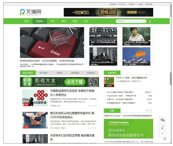 圖2  艾瑞網(wǎng)“互聯(lián)網(wǎng)+”頁面