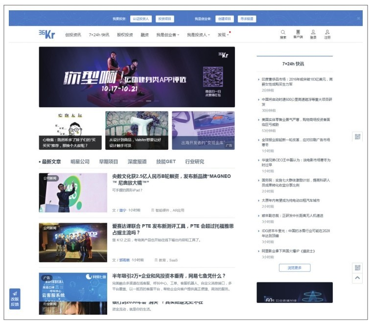 如36氟網(wǎng)(見圖6)是很經(jīng)典的兩欄布局,由于兩欄所占比例較大,用戶會(huì)不自覺地將視線停留在占有較大面積的左欄,自上而下的逐一瀏覽資訊。